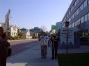 We got to picket when the Scientologists weren't filming - here, a police offer talks with someone (a Scientologists, I think), while Don NOTs pickets beyond the film set. |