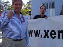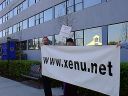 Snefru (left) and others holding up www.xenu.net banner on LRH Way. |