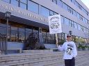 Administrati posing in front of the ASHO lion with my favorite sign of the whole picket: "If you can't convert 'em - hurt 'em." |