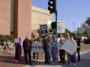 Picketers at FOLO on Hollywood Blvd: Bruce Pettycrew, new picketer Lori, and Dennis Erlich. |